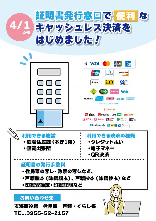 住民課・値賀出張所窓口でキャッシュレス決済が利用できます
