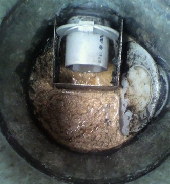 これは、網カゴや配管に生ごみなどの食べ残しが流れてきており、閉塞間近の状態です。